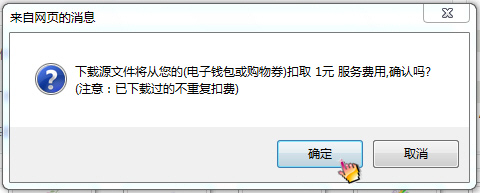 :點擊按鈕會彈出確認下載提示框,點擊‘確認’即可(點擊后將會從您的購物券中扣取一元的服務費,如購物券金額不足將從電子錢包中扣取)