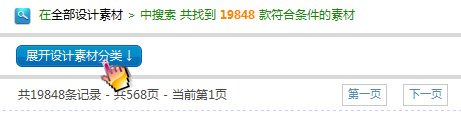 二、進入素材搜索功能頁面,點擊‘展開設(shè)計素材分類’