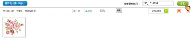 四、根據(jù)素材編號來查找花型,在‘搜索素材編號’框里輸入查找素材的編號,然后點擊‘搜索’