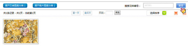 二、進入花樣搜索功能頁面,點擊‘展開匹裝圖案分類’或‘展開裁片圖案分類’
