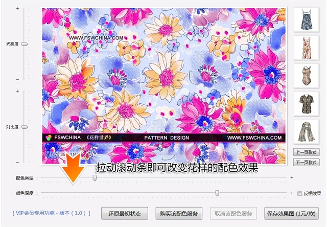 (2) 任意打開一個面料花樣,移動到配色效果圖顯示位置,點擊‘下載配色效果圖顯示程序’。