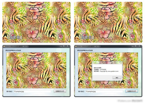 對(duì)于在網(wǎng)絡(luò)上展示的花型圖案設(shè)計(jì),對(duì)于展示的花樣預(yù)覽圖、試衣配色效果圖、局部樣圖以及花樣設(shè)計(jì)源文件就采用了最新的數(shù)字加密保護(hù)技術(shù),只要圖片是來源于原作者的,我們將能夠通過識(shí)別軟件得知。 花樣數(shù)字加密保護(hù)技術(shù)能有效的保護(hù)設(shè)計(jì)師的花樣作品不被冒充與盜用,如發(fā)現(xiàn)設(shè)計(jì)師花樣作品被盜用在別的網(wǎng)站或其他非合法授權(quán)途徑,設(shè)計(jì)師或該花型的合法使用客戶均有能力對(duì)其進(jìn)行證明以及提起訴訟。