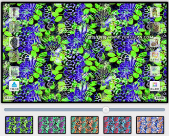 4、我們每上傳一個(gè)花型,在花型操作區(qū)的下方,都會(huì)有隨機(jī)生成的5種配色,如果不喜歡這5種配色,還可拉動(dòng)操作區(qū)下方的配色桿,進(jìn)行配色。