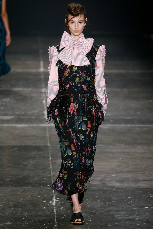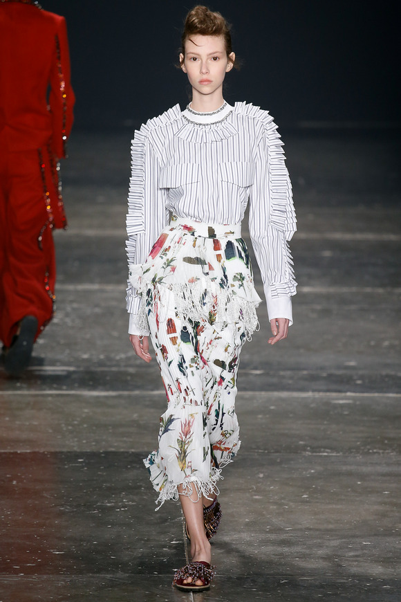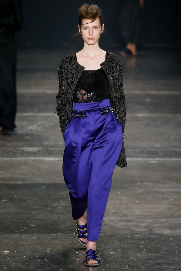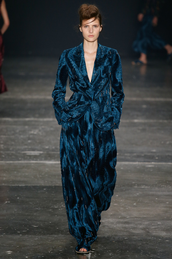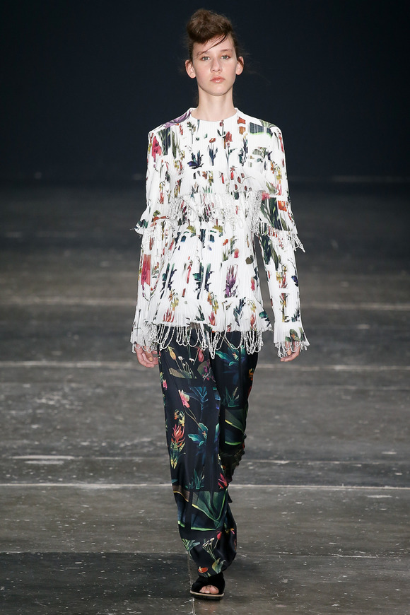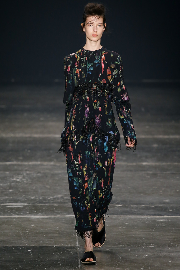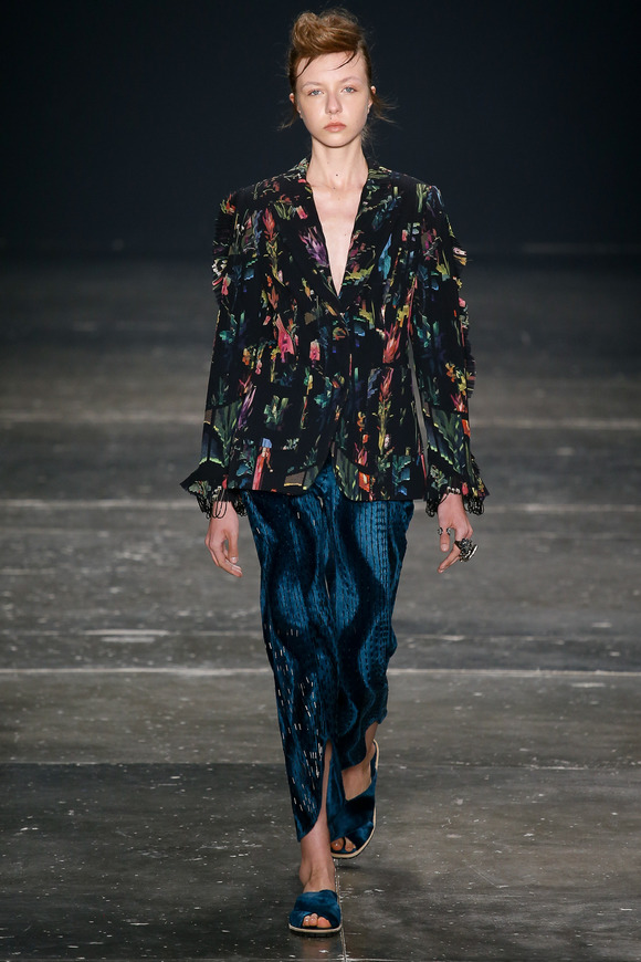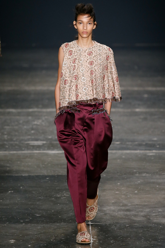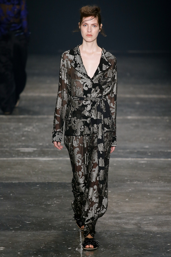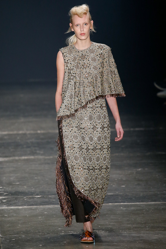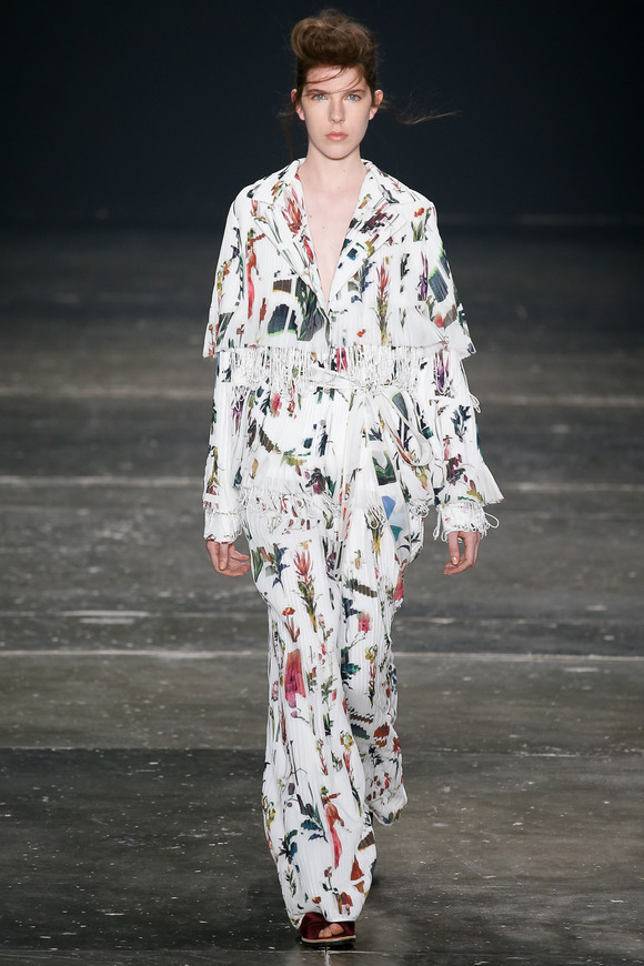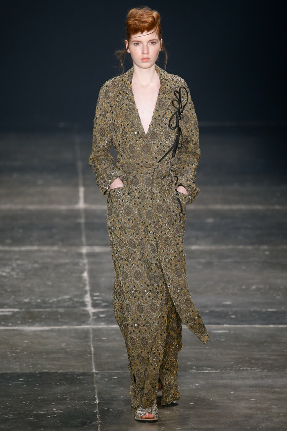 Apartamento 03 的2016秋冬系列延續(xù)和發(fā)展了該品牌設(shè)計(jì)師Luiz Claudio的風(fēng)格,在女裝世界里探索宗教靈性。簡(jiǎn)約的廓形、新穎的面料,獨(dú)特的印花,考究剪裁,再加上白、黑、紅、金屬藍(lán)等金色組成的主打色,無(wú)不體現(xiàn)了獨(dú)特的設(shè)計(jì)風(fēng)格。整個(gè)系列做得非常用心,展現(xiàn)了摩登韻味。