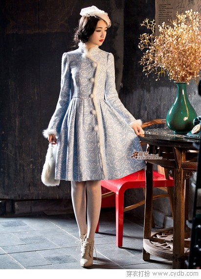 玫瑰盛開是很多女孩子都喜歡的浪漫唯美,毛呢并不是最好的印花材料,但它卻讓玫瑰印花秀出了新姿態。裙式外套,兔毛滾邊,質感高大上,有一種溫婉淋漓盡致,印花奢華而低調。