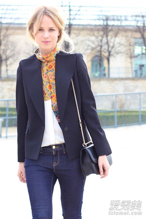 穿黑色小西裝的時候配一件明媚浪漫的印花襯衫讓造型不單調,彰顯精致女人味,把浪漫穿上身。