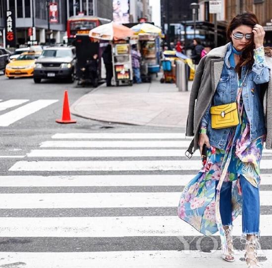 時尚達人們演繹出今夏印花與丹寧搭配的多種可能性,總有一款適合你!模特伍靜麗選擇Leonard潑彩印花連身裙,搭配一件中性丹寧外套,在視覺上平衡了印花的甜美,使得整體造型即散發出柔美氣息又率性十足。博主Maryna Kovaltchuk提供了另一種時髦個性的穿著方式,印花襯衫和牛仔喇叭褲的組合,充滿80年代的復古腔調。