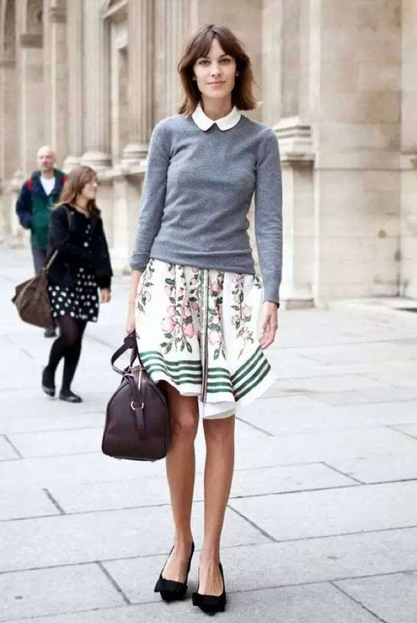 或者學學鐘小姐的學院風,翻領上衣加印花裙秒回校園時代。