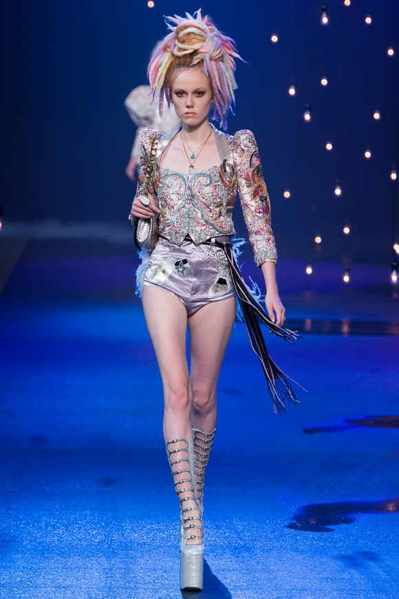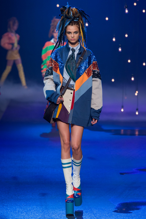 Marc Jacobs 馬克middot;雅可布 這一季在紐約的時裝里,設計師選擇了陽光明媚的亮色和花朵。小碎花,毛皮領,亮片,引人注目,貫穿整個發布會。