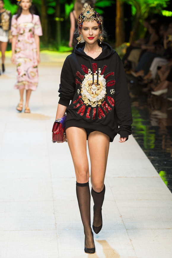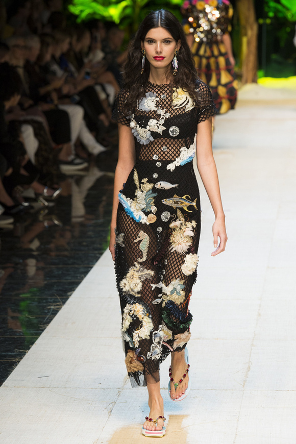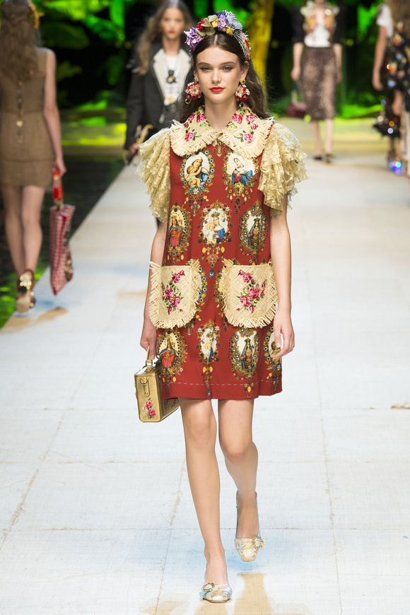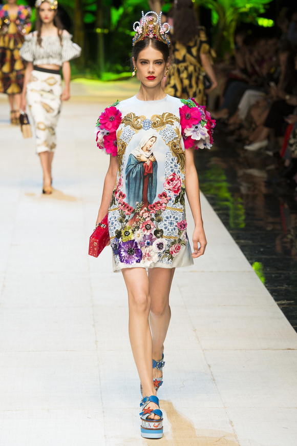 Dolce Gabbana 2017春夏時(shí)裝秀在米蘭時(shí)間9月25日下午2時(shí),一個(gè)從未見過(guò)的富麗奇境將在眼前展開...... 設(shè)計(jì)師二人組將風(fēng)馬牛不相干的元素組成反傳統(tǒng)的時(shí)裝系統(tǒng),譬如,Tropico Italiano 透過(guò)這面靈感墻可以清晰的看到新系列的靈感源于自由不羈、卓爾不群的狂放旅行家的獨(dú)立女性形象,一群隨心所欲而又充滿真性情的孤傲女性.她們無(wú)所畏懼地探索世界上最為刺激的角落! 明快富足的鮮花永遠(yuǎn)盛開在Dolce Gabbana充盈的裙擺上少女的水嫩色彩在奢華的綢緞和質(zhì)地中呼之欲出,新系列中極致手工的繡花細(xì)節(jié)翩然浮現(xiàn)。或是迎合薄紗的質(zhì)感,或是演繹浮雕紋飾的立體花卉,歡脫爛漫的少女氣質(zhì)在行走之間彌漫,嫣然含笑之間潔凈無(wú)瑕,喜歡金屬唇妝,也有顆溫柔爛漫的少女之心。毋庸置疑,沒(méi)有女人會(huì)拒絕花朵帶來(lái)的優(yōu)雅和清新,少女更是和花語(yǔ)心靈相通。服飾上析出彎曲纏繞的藤蔓花朵,大片盛開在少女纖細(xì)的腰間、胸口、裙擺。。。還有波點(diǎn),我想 波點(diǎn)只有Dolce Gabbana能用的好看了!