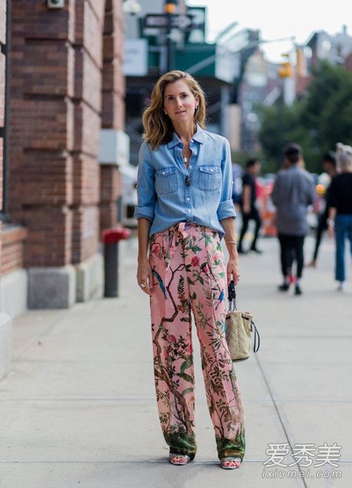 牛仔襯衫配印花闊腿褲,簡(jiǎn)單的搭配因?yàn)槿A麗的單品變得與眾不同,是不是浪漫吸睛呢?