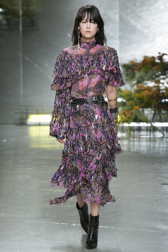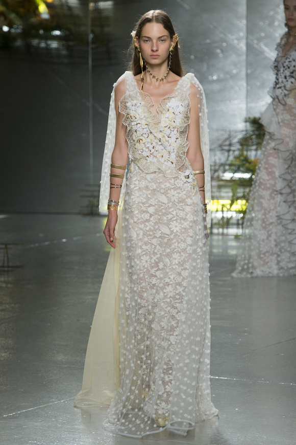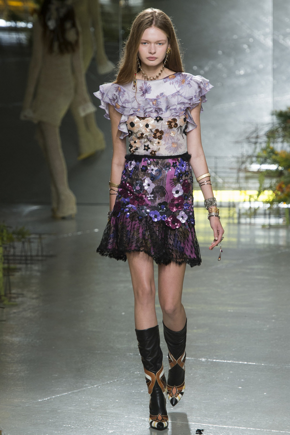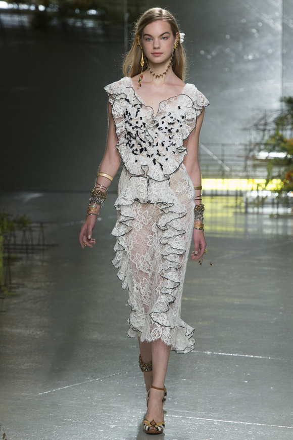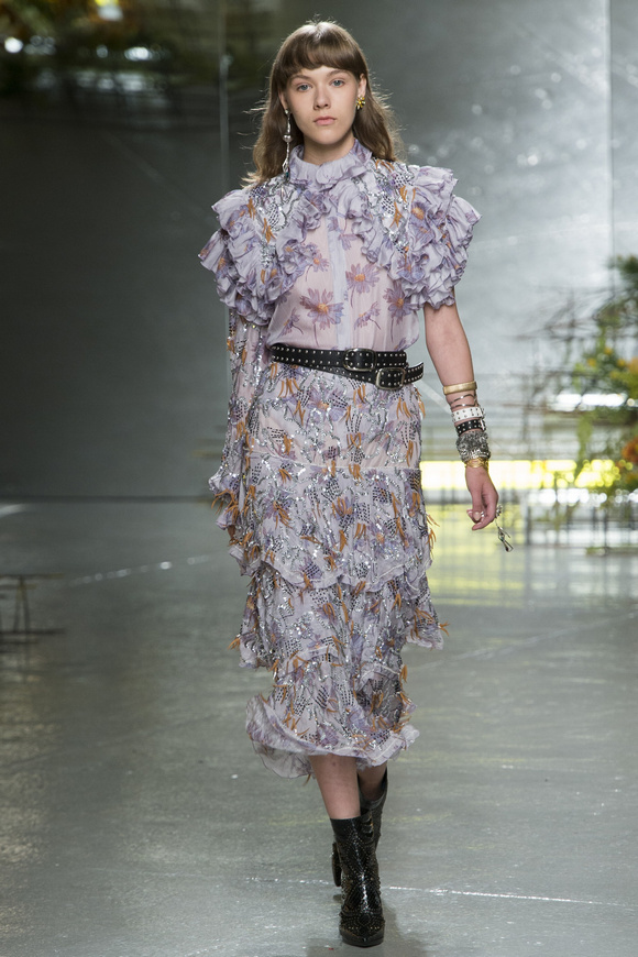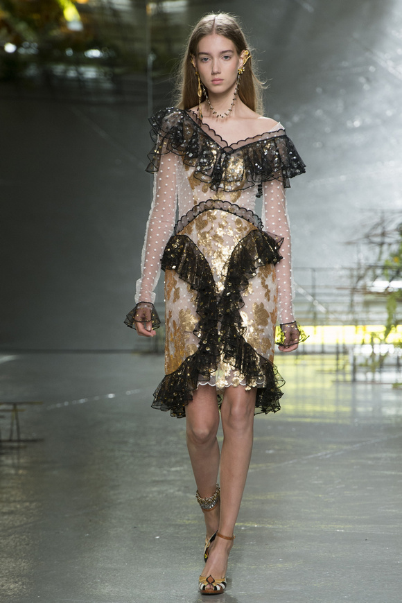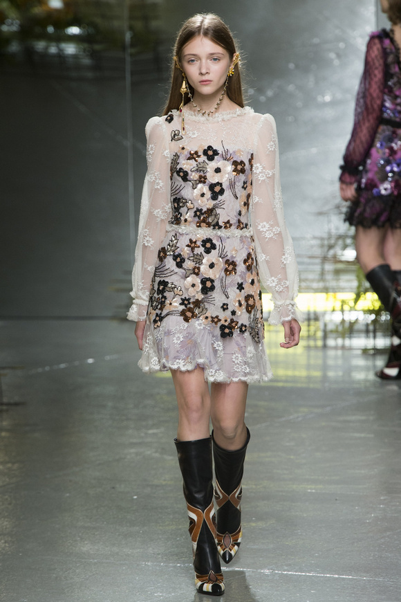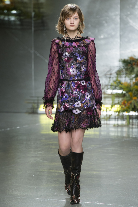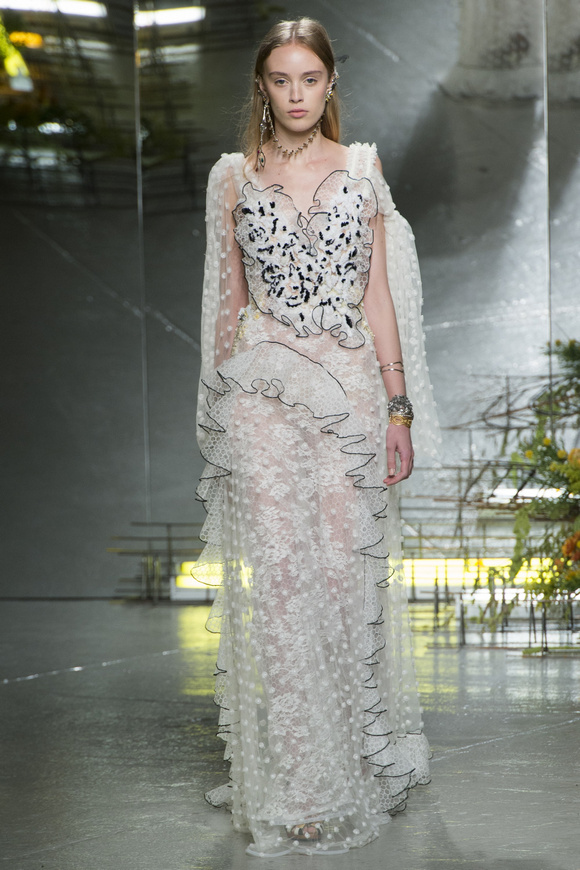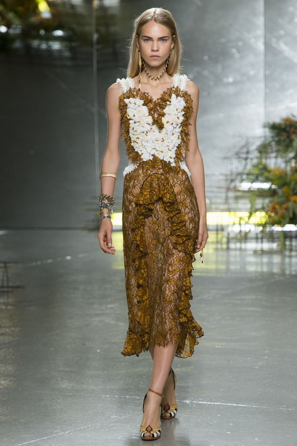 Rodarte 羅達特的設計師Laura和Kate Mulleavy在2017的春裝大膽地運用了蜂巢的設計,結合花卉刺繡和貼花,讓這一季的作品充滿了活力。