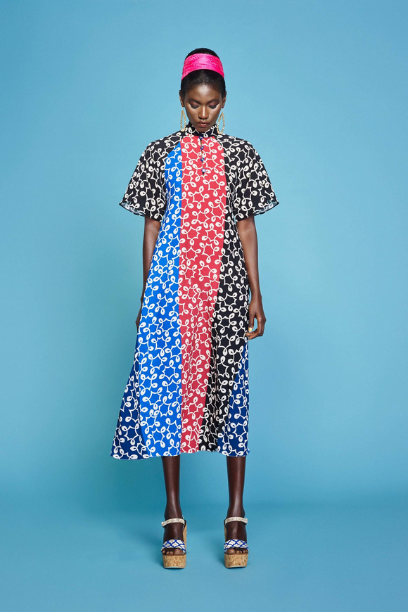 Duro Olowu 的設計師Olowu在這一季的作品中,他堅持西方經典時尚的比例和輪廓,并使用它們作為顏色和圖案,暗示多元文化的城市景觀絢麗的混亂組合。他提高了色彩的亮度,活力,強調大膽的圖形和一個華麗的調色板。