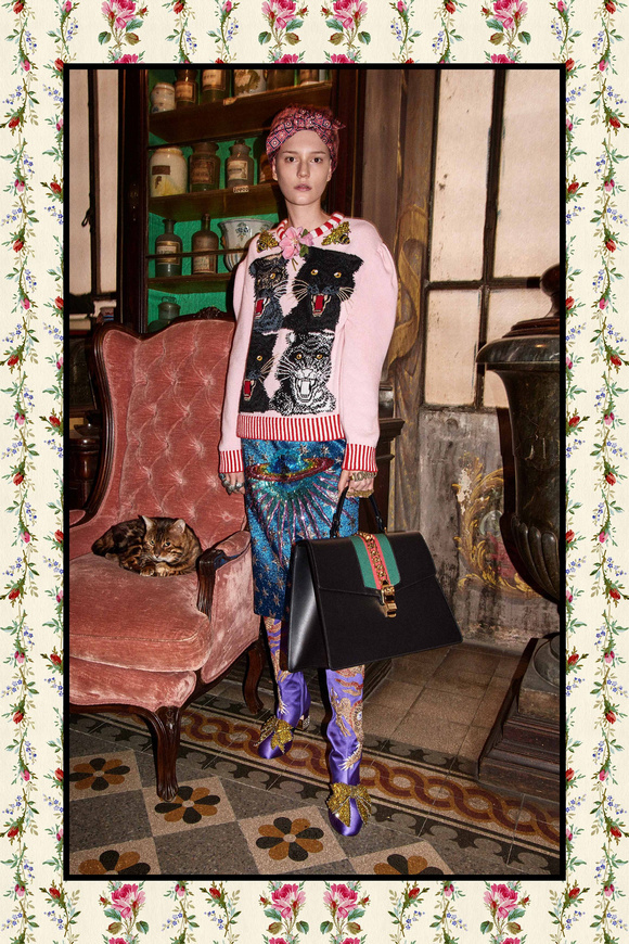 Gucci的設計師Alessandro Michele是一個偉大的會講故事的人。他的藏品似乎都在講述一個個奇異的故事,各種各樣的兔子,老虎,貓,龍是一個奇妙的,誘人的幻想世界。