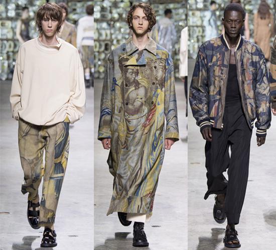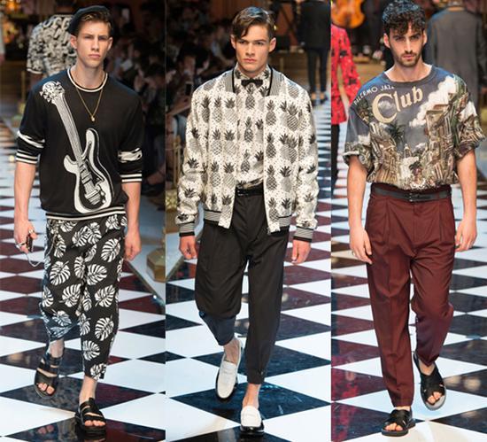 所以,男明星這么大張旗鼓的穿印花裝,可見男裝秀場中的印花也越來越多。有像Dolce amp;Gabbana這種致力于做印花的老牌時裝屋,每年在男裝印花這塊都能玩出不一樣的花樣,就拿2017年春夏系列來說,從以往的意大利風情,古希臘風情的印花,到這季吉他,水果,城市的度假風圖案,讓整體基調(diào)都變得輕松起來。