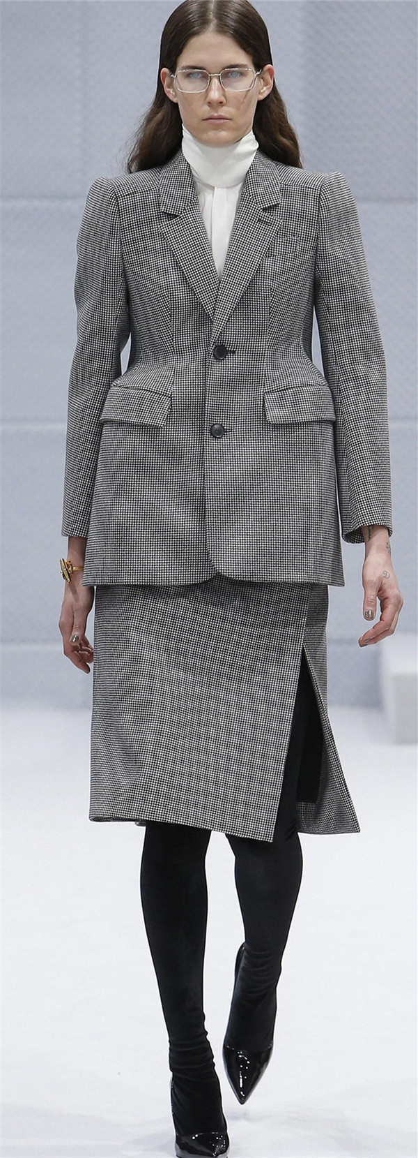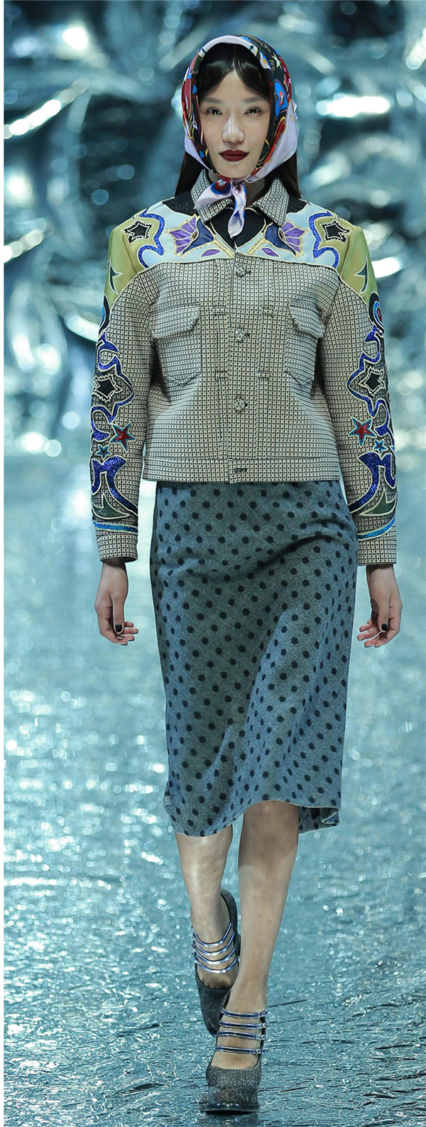 2017/18秋冬收拾好行裝踏上尋覓時尚之旅,鏡頭轉(zhuǎn)向了前蘇聯(lián),拾起那一片片零碎的記憶,組合成一種全新的富有文化底蘊的服裝風(fēng)格,系著阿廖努什卡式頭巾的女士,架著金屬眼鏡的知識分子,帶有地域色彩的神秘圖案、大膽明快的色塊拼接以及強勢回歸的職業(yè)女裝成為亮點,不對稱裁剪宣告著對傳統(tǒng)的反叛,使這一融合多民族文化的混合風(fēng)格,極富酷感的外觀。多重文化的碰撞為這一種擁有獨特藝術(shù)魅力的設(shè)計風(fēng)格注入新鮮血液。