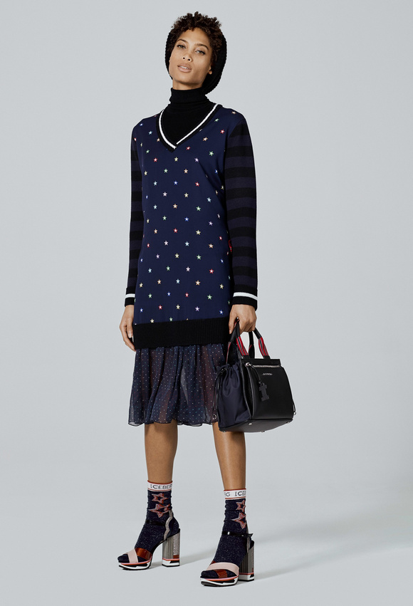 James Long 最近被任命為Icebergs的首席設計師,在這一季的設計里,他加入了漫畫、運動以及鮮明的朋克元素,配合意大利的精致和豪華,構成了相當迷人的好萊塢感覺。