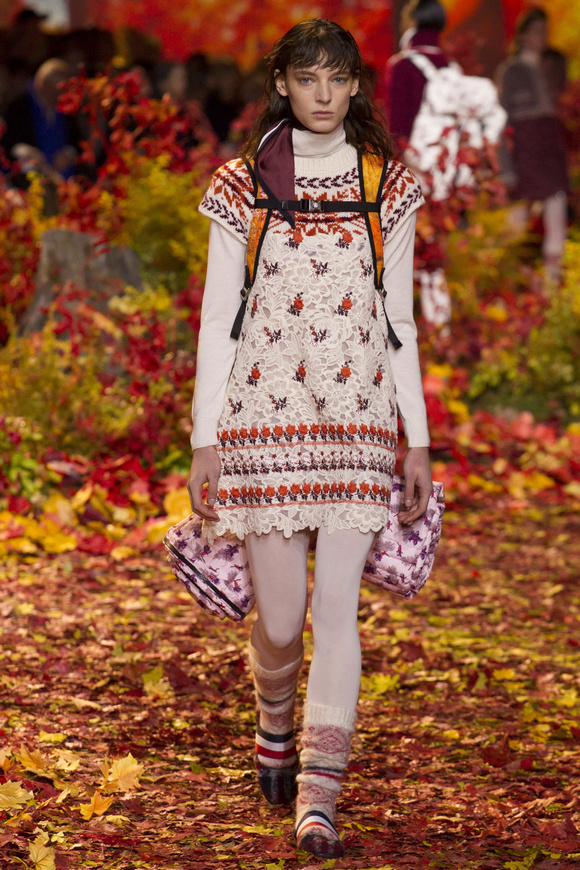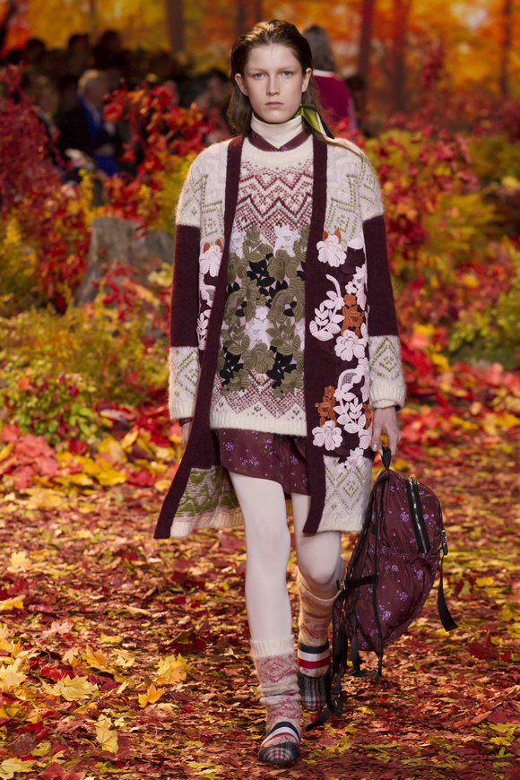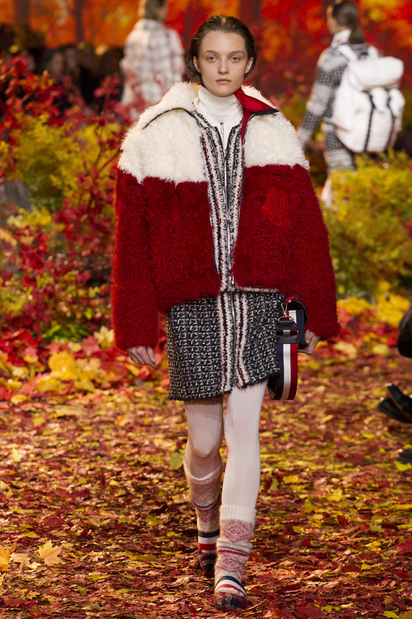 Moncler Gamme Rouge這一季的秀場布置成秋天的樹林,格子夾克、毛絨外套。一個理想的視覺,看到有歐洲的痕跡,也有加拿大的風格。