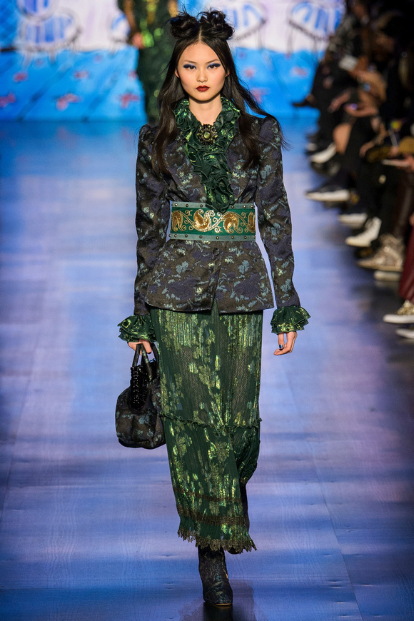 我們并不諱言:安娜蘇這一季的發(fā)布會(huì)絕對(duì)是令人高興的。在這一季輕松、樸素自然、大膽成為常態(tài),Sui繼續(xù)做她最擅長(zhǎng)的,提供一個(gè)豐富多彩的視覺(jué)盛宴。她這一季的靈感這來(lái)自于伊爾莎middot;斯奇培爾莉的傳記,使到設(shè)計(jì)融入錯(cuò)視畫,針織和人造毛皮。同時(shí),設(shè)計(jì)師沉浸在室內(nèi)設(shè)計(jì)師Elsie de Wolfe的作品中,他設(shè)計(jì)的1938集后夏帕瑞麗馬戲團(tuán)表演晚會(huì),以及一個(gè)鏡像家Dorothy di Frasso伯爵夫人在貝弗利山莊(也是瑪琳 黛德麗)。Sui也融入了40年代電影歡樂(lè)的精神,把幾件設(shè)計(jì)做成粼光的感覺(jué)。說(shuō)實(shí)話,Sui與生俱來(lái)就有一種將她所見到的能巧妙地融入到她的設(shè)計(jì)的技能。