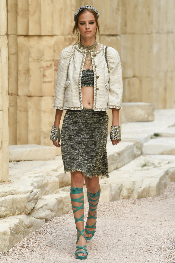 Chanel 香奈兒2018最新休閑時裝將我們帶到古希臘的凈土,在搖搖欲墜的柱子和斷裂的石板中開啟了時裝秀。這一季服裝的設(shè)計靈感,來源于希臘的關(guān)于畫廊的著名網(wǎng)站。時尚是一種周而復(fù)始的變化。