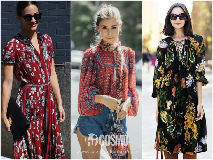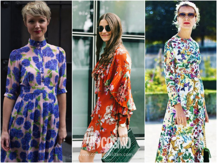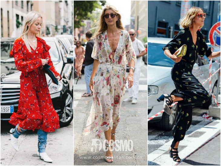 全身印花比較偏甜美風格,可以是同一色系的印花又或者是不同色調的印花搭在一起。